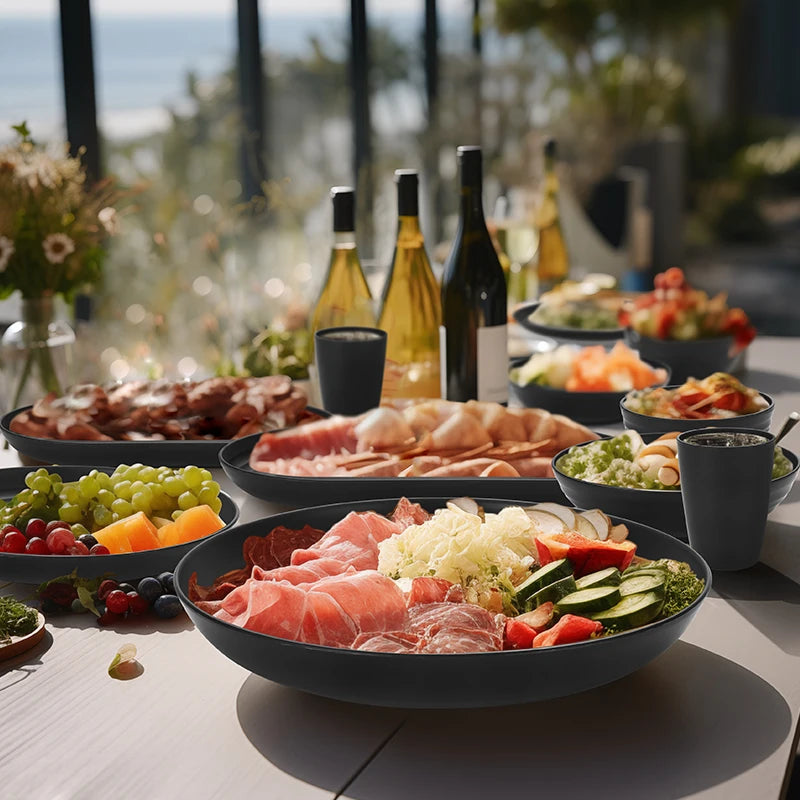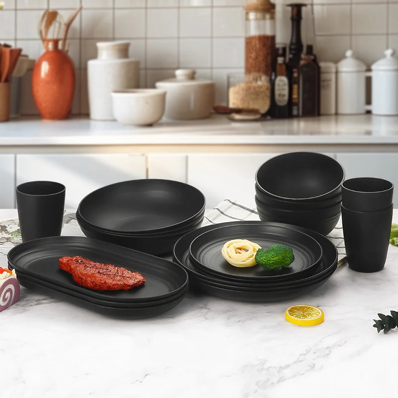 24pcs Camping plastic cutlery set with plates, bowls, cups and serving plates