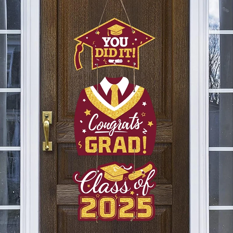 Graduation Door Hanging Decorations – Gown & Cap Design | 2025 Congrats Grad Party Supplies